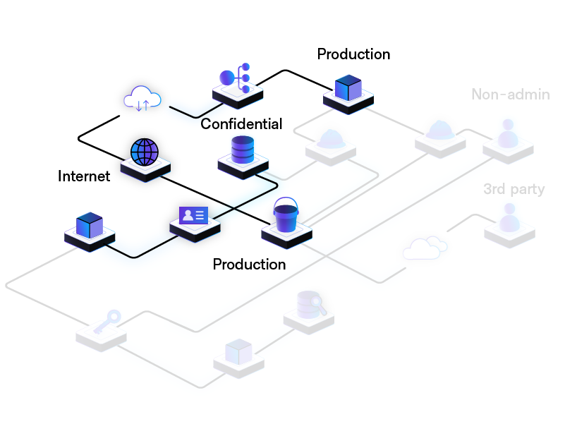 Ariksa delivers advanced posture management by not only assessing misconfigurations against standard or custom policies, but also performing combination analyses of bad configurations, entitlements, and activity. Ariksa provides a visually-rich 360° view of direct and indirect risksand access paths the make investigation efficient