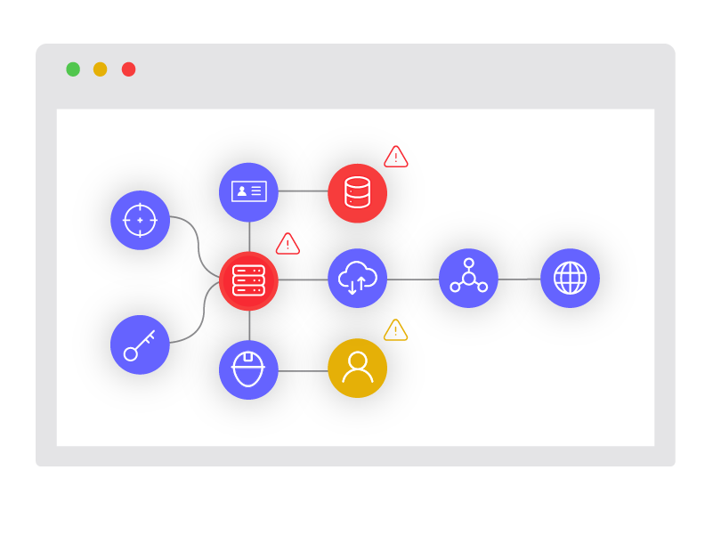 Risks are often created by combinations of misconfigurations, identity permissions, network accessibility and credential leakage. Ariksa assimilates and enriches all identity information in a graph database and creates a visually intuitive view of dependencies, connections and activity. This helps you see immediate threats, and assess direct and indirect risks
